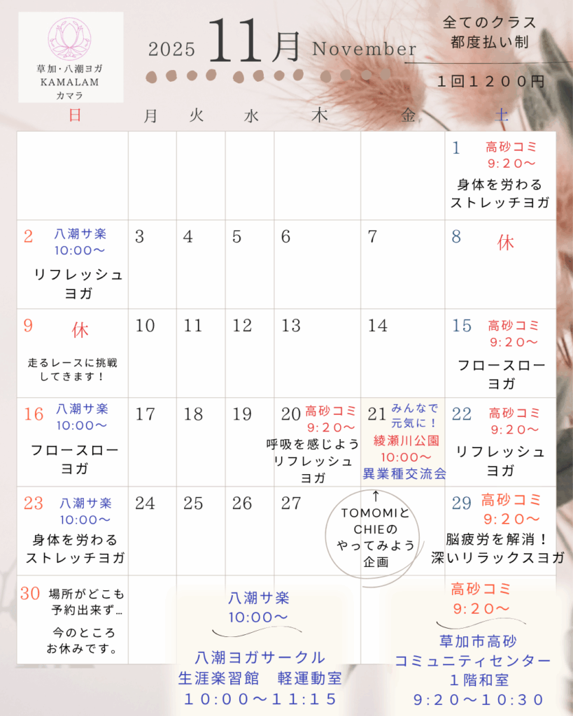 八潮 楽習館 ヨガサークル 日曜日 10:00~11:15